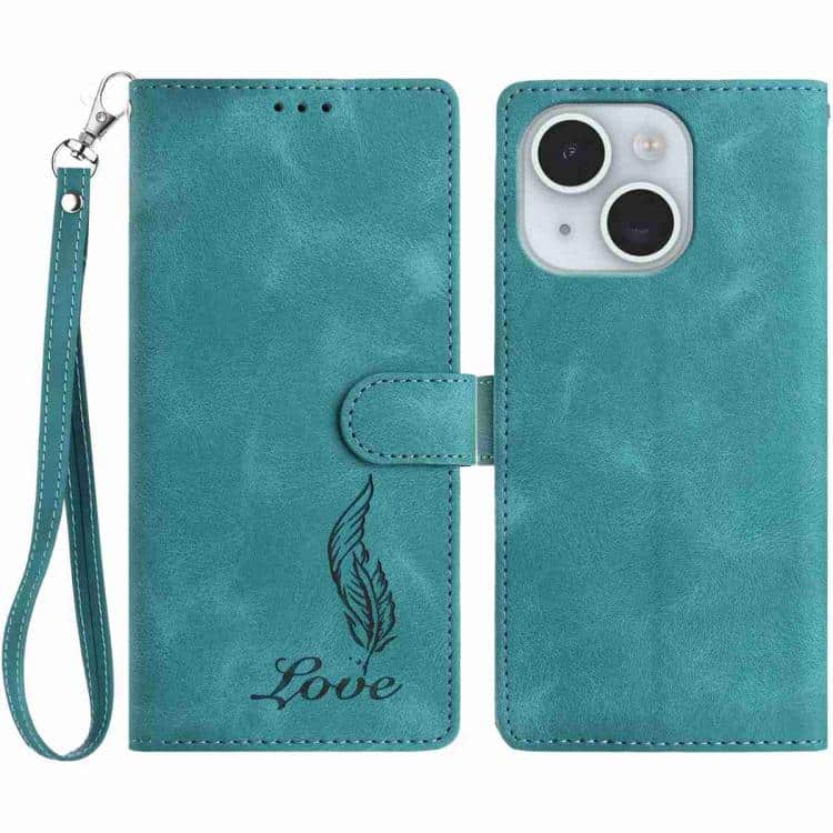 Skin Feel Embossed Feather Leather Phone Case, For iPhone 15, For iPhone 14 Plus, For iPhone 14