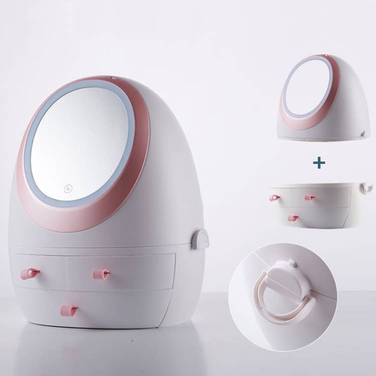 Staubdichte tragbare Kosmetik-Aufbewahrungsbox für den Schreibtisch mit Spiegel, White Single Mirror, White Mirror With Light, Pink Single Mirror, Pink Mirror With Light