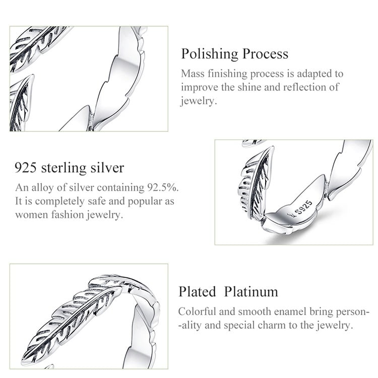 Sterling Silber Ring Weißer Federring Mode Einfacher Ring