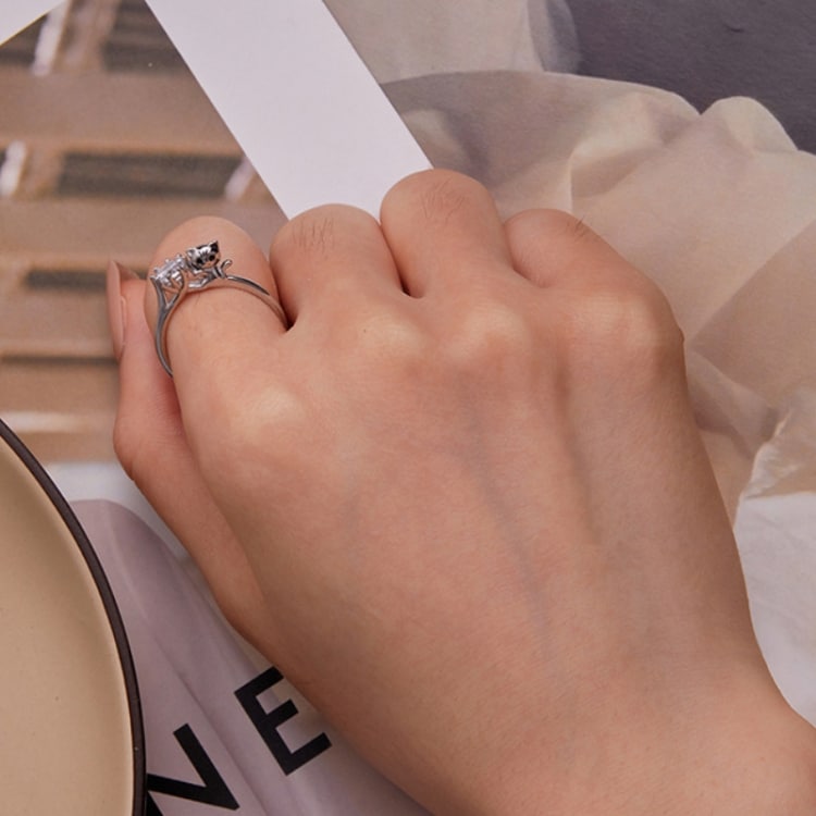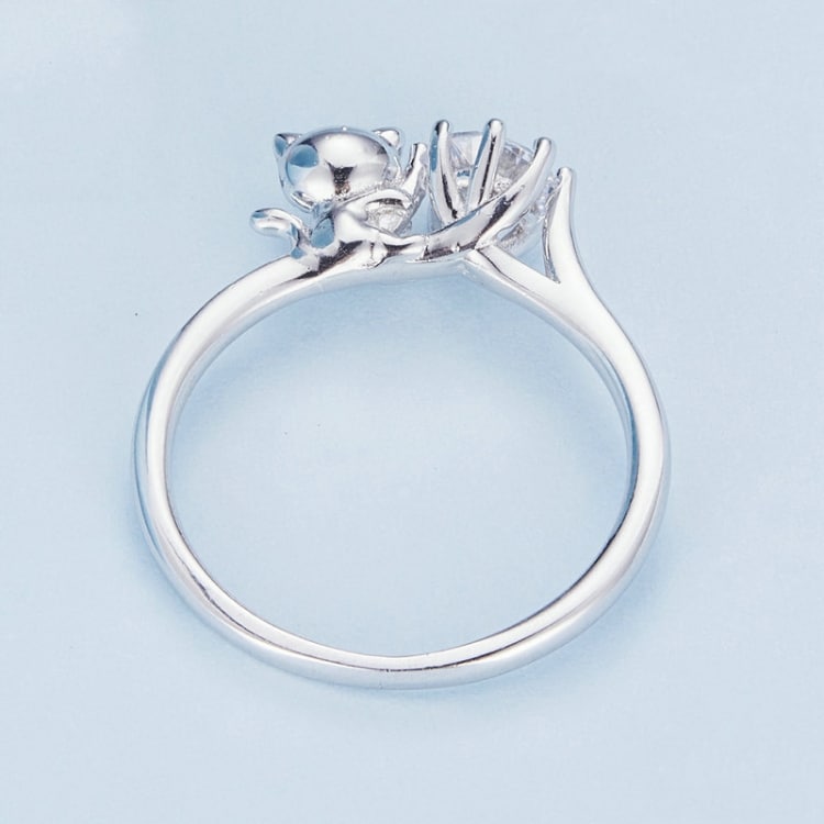 Sterling Silber S925 Katze Zirkon platinierter Tierring