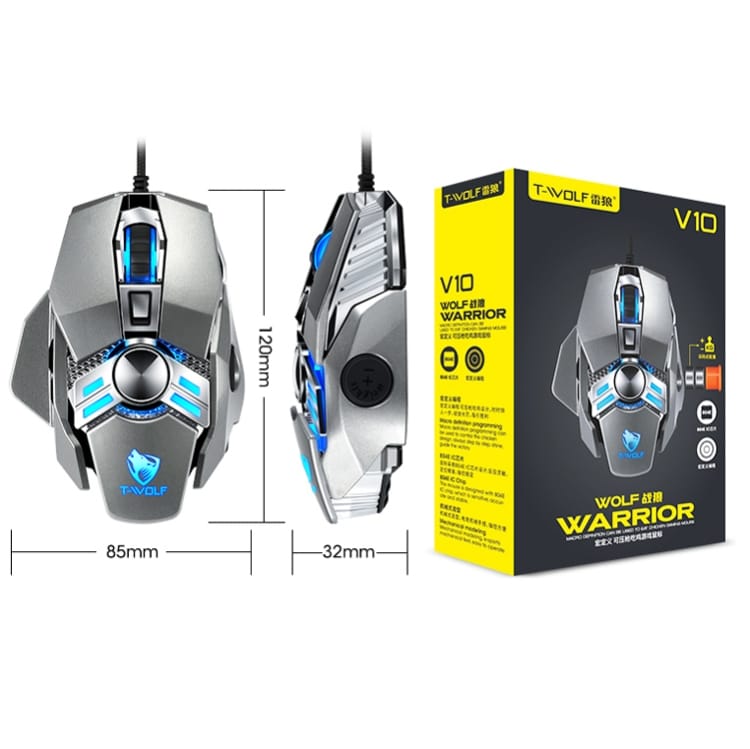 T-WOLF V10 USB-Schnittstelle, 7 Tasten, 6400 DPI, kabelgebundene Gaming-Maus, benutzerdefinierte Makroprogrammierung, 4-Farben-Atmungslicht-Gaming-Maus, Kabellänge: 1,5 m