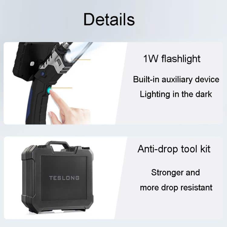 Preisspanne: CHF 423.90 bis CHF 483.70TESLONG TD450S 4.5 Inch Screen 210 Degree Bendable Industrial Endoscope 1.55m Length, 8.5mm Single Lens, 8.5mm Dual Lens