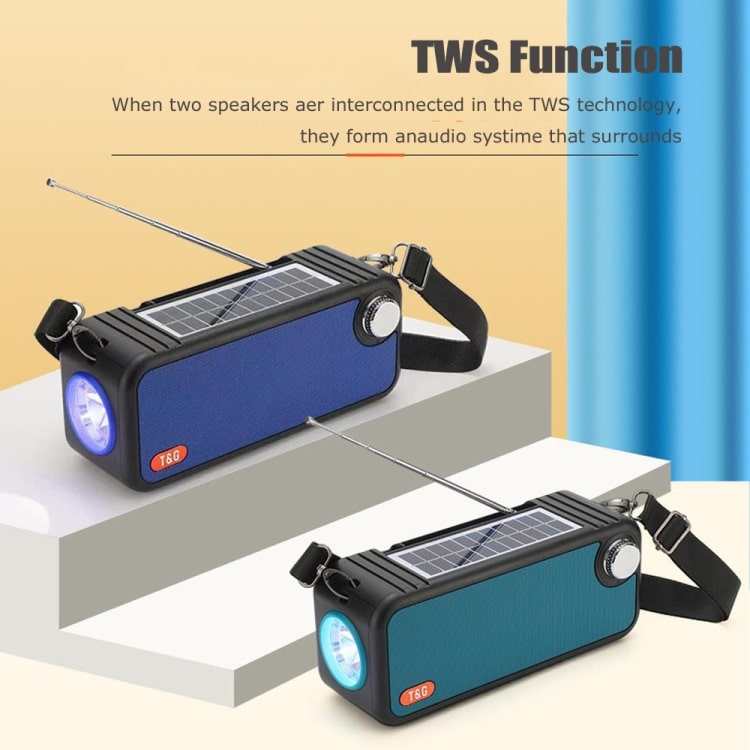 T&G TG637 Tragbarer, solarbetriebener, kabelloser Bluetooth-Lautsprecher für den Außenbereich mit FM/Taschenlampe/TF-Kartensteckplatz