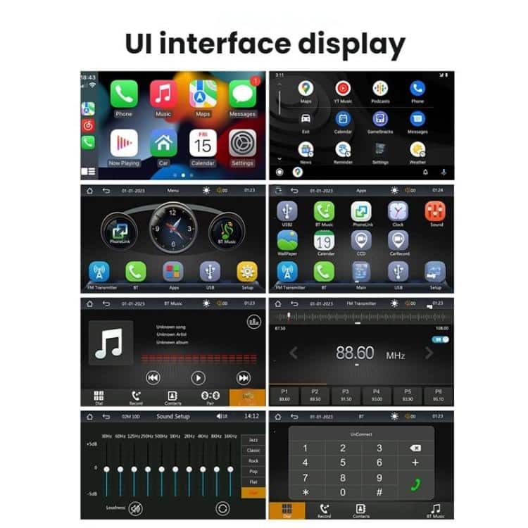 12. Unterstützt kabelgebundenes und kabelloses Carplay+Android Auto, mit einem Klick können Sie mobile Navigation, Musik, Sprachassistent und andere Funktionen nutzen, damit Sie den Fahrspaß ganz einfach genießen können