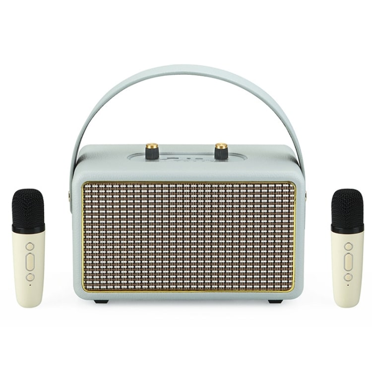 Tragbarer Karaoke-Bluetooth-Lautsprecher aus Holz mit Lederstruktur