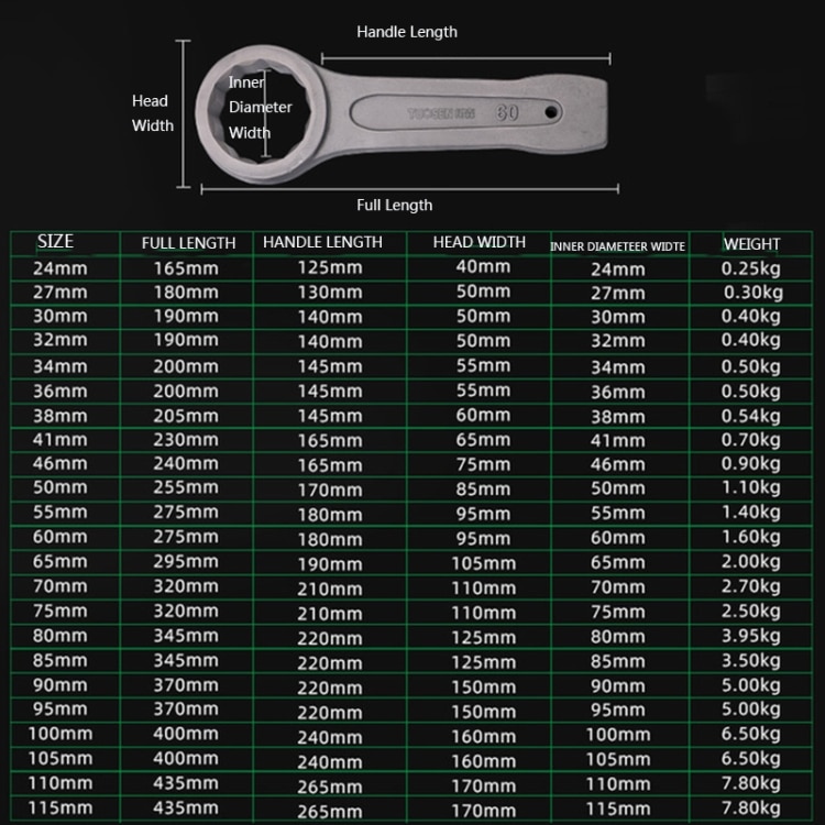 TUOSEN Einseitiger Schlagschrauber mit geradem Griff, grau phosphatiert, 46mm, 50mm, 55mm, 60mm