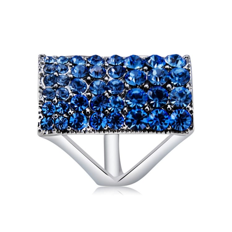 Versilbertes Rechteck mit blauem Kristallring für Frauen (Silber mit Diamant, US, Größe: 7)