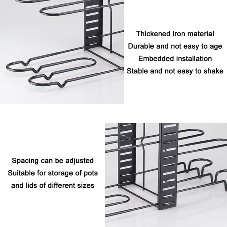 6. Der Abstand ist einstellbar, geeignet für die Aufbewahrung von Töpfen und Deckeln unterschiedlicher Größe