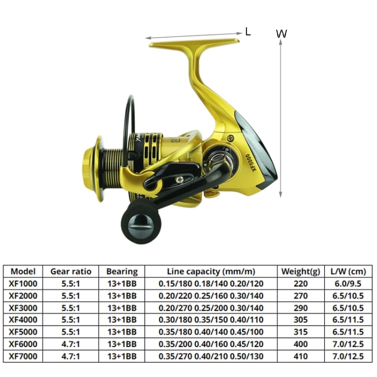Vollmetall-Angelrolle mit Schwingarm und Metallkopf, YUMOSHI XF2000