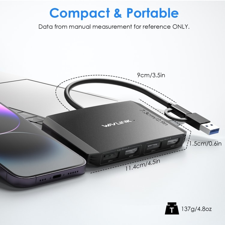WAVLINK WL-UG69DH2 Dual-Monitor-USB+Typ-C-auf-Dual-4K-HD-DisplayPort-Adapter-Splitter