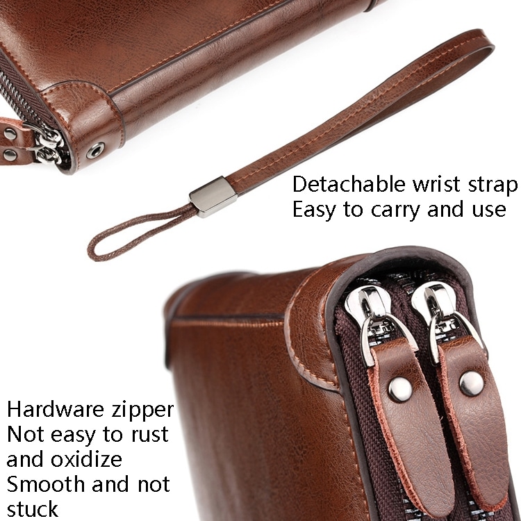 5. Features: Hardware-Reißverschluss, nicht leicht zu rosten und oxidieren, glatt und nicht stecken, abnehmbares Armband, leicht zu tragen und zu verwenden, geschmiedet mit Retro-Wachs-Leder, flexibel und zart, Kompartiments-Speicherdesign, große Kapazität, Eckstich, schön exquisite