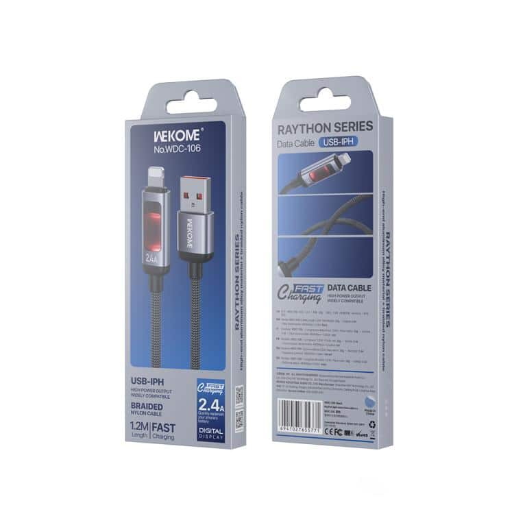 WK WDC-106 2.4A Intelligent Digital Display USB to 8 Pin Fast Charging Data Cable, Length: 1.2m