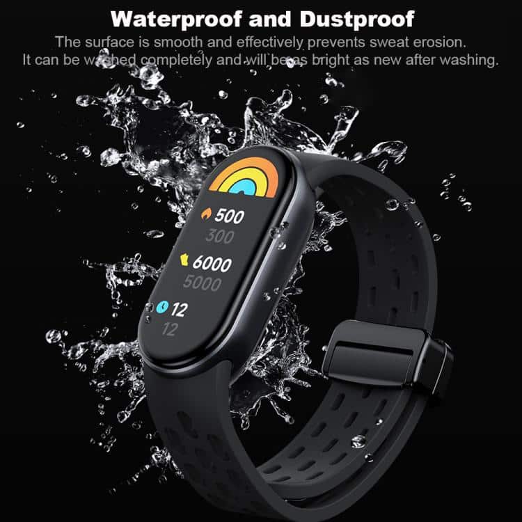xDfind Holes Magnetic Black Buckle Silicone Watch Band, For Xiaomi Smart Band 10 / 9 / 8