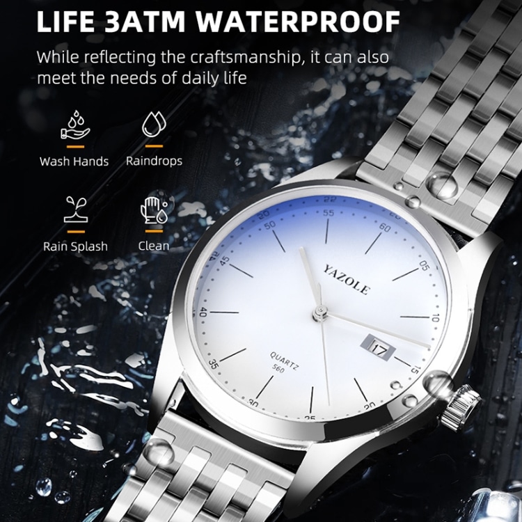 YAZOLE 560 Edelstahlband Quarzwerk Wasserdichte Herrenuhr