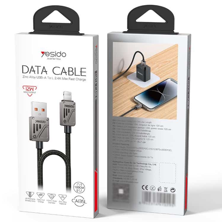 Yesido CA135L 12W 2.4A USB to 8 Pin Zinc Alloy Data Cable