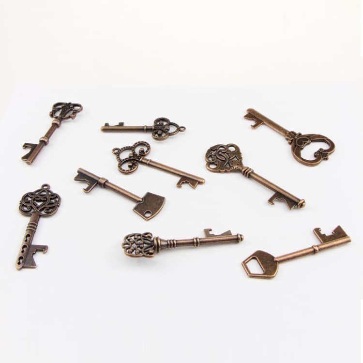 Gemischter Satz Vintage-Skelettschlüssel in antiker Bronze unterschiedlicher Größe als dekorative Dekorationen für Partygeschenke, Halsketten, Kunsthandwerk (Bronze-Set mit 9 Stück)