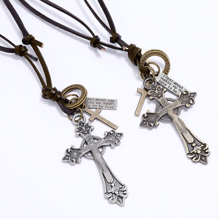 Vintage Lange Kreuz Halskette Kordelzug Verstellbare personalisierte Pullover Kette