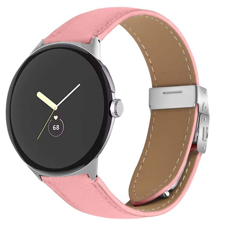 Lychee Texture Rose Gold Turtle Back Buckle Leather Watch Band, For Google Pixel Watch / Watch 2 / 3 41mm