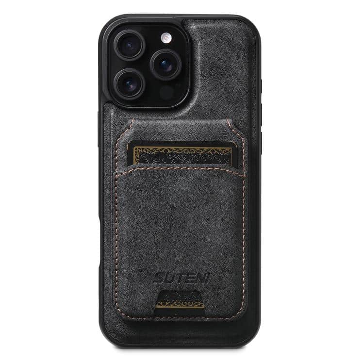 Suteni M4 Magnetkartentasche MagSafe Leder-Telefonhülle, For iPhone 16 Pro Max, For iPhone 16 Pro, For iPhone 16 Plus, For iPhone 16, For iPhone 15 Pro Max, For iPhone 15 Pro, For iPhone 15 Plus, For iPhone 15