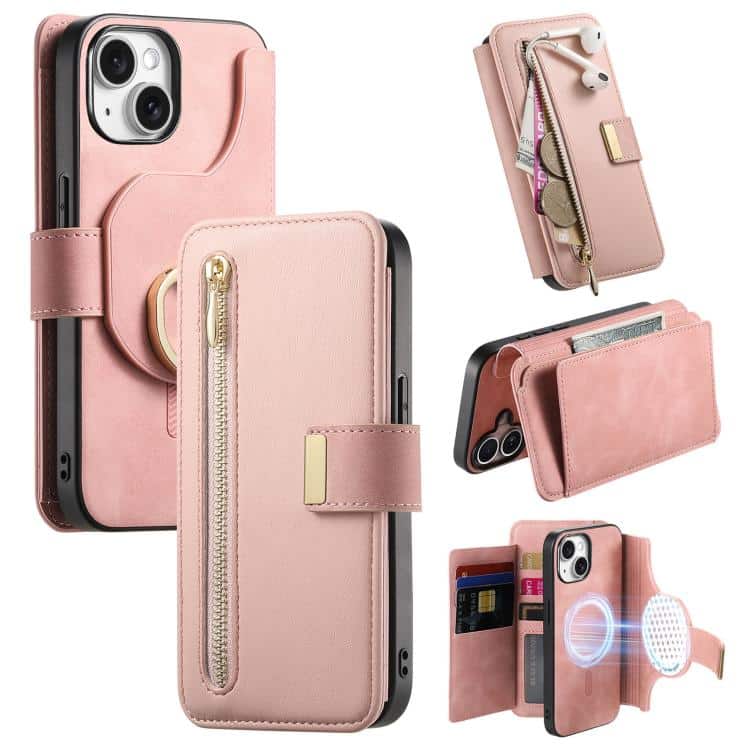 Ring Zipper Wallet RFID Blocking MagSafe Leather Phone Case, For iPhone 12 / 12 Pro, For iPhone 12 Pro Max, For iPhone 11 Pro Max