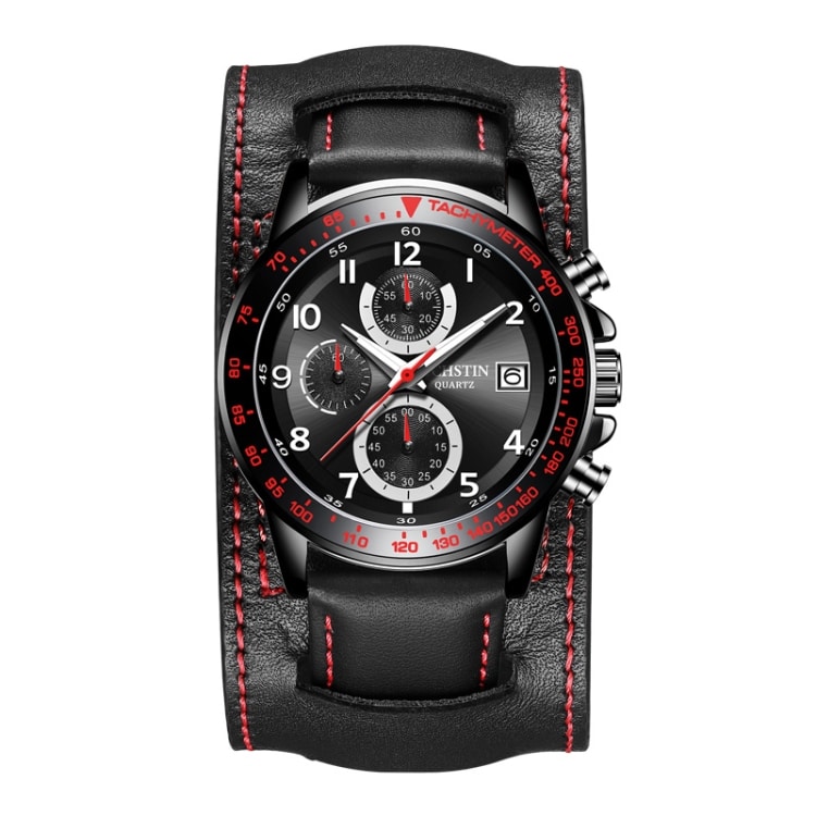 Ochstin 6122 Multifunktions-Quarzuhr, Sport, leuchtende, wasserdichte Uhr, Kalender, Leder, Herrenuhr