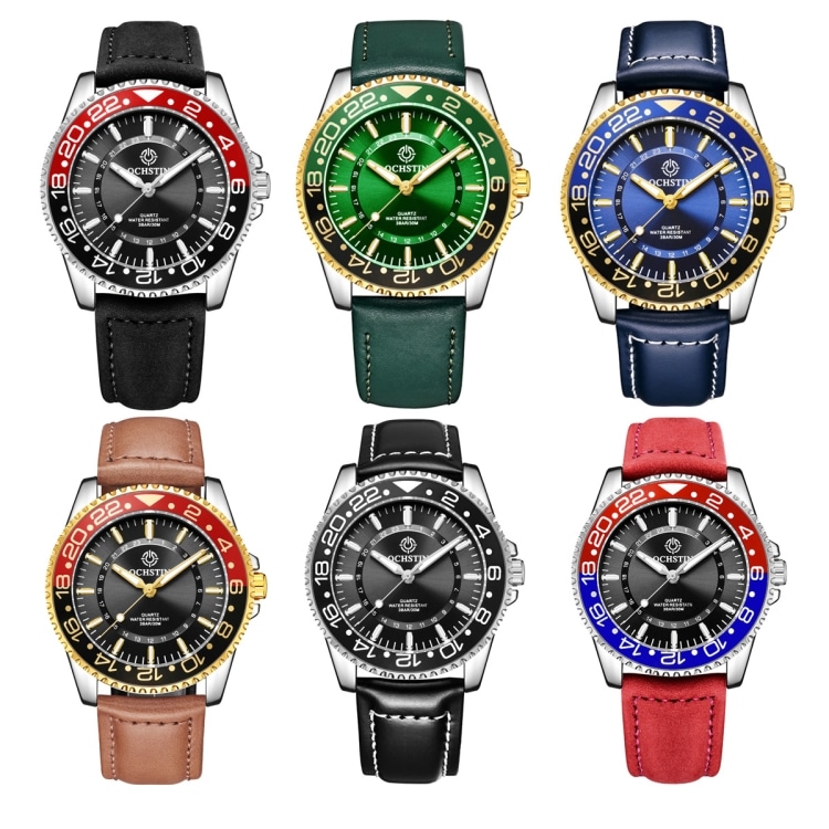 Ochstin 5081A Multifunktions-Quarzuhr mit leuchtendem, wasserdichtem Lederarmband
