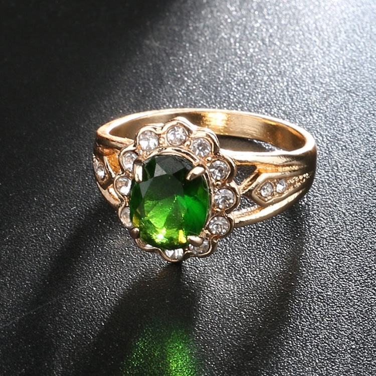 Modischer, ovaler, grüner Edelstein-Diamantring im Vintage-Stil