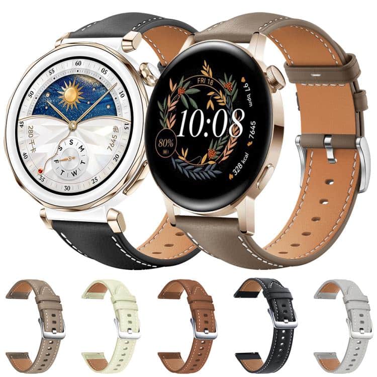 xDfind Flat Head Black Shark Fine Grain Leather Watch Band, 22mm For Huawei Watch GT5/GT5 Pro/4/4 Pro, 20mm For Huawei Watch GT 4 / GT 3 / GT 2