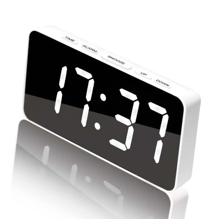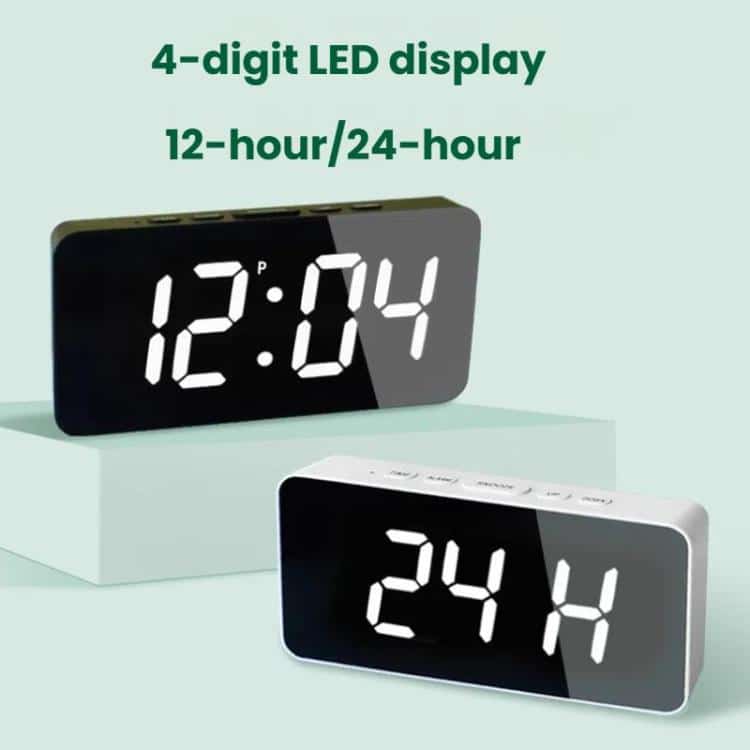 LED Mirror Digital Clock with Type-C Charging Port & 18650 Battery Compartment (Battery Not Included), White Shell White Light, Black Shell White Light, Black Shell Blue Light, White Shell Blue Light