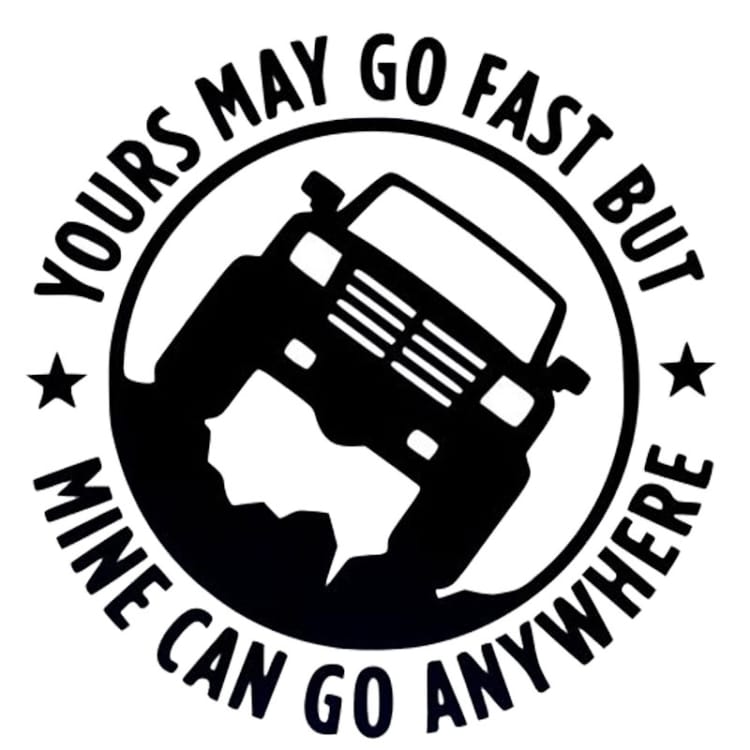 10 Stück Yours May Go Fast Mine Can Go Anywhere Vinyl-Aufkleber für Autos, Größe: 15 x 15 cm, YOURS MAY GO FAST MINE CAN GO ANYWHERE